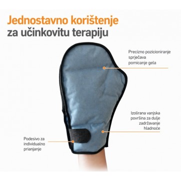 Jednostavno umetanje i vađenje gel paketa (čičak traka omogućava lako otvarenje rukavice po njenoj dužini čime je vađenje i umetanje gel paketa posve jednostavno). Pristajanje rukavice lako se podešava pomoću praktične čičak trake na zapešću.